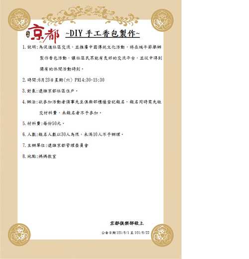 端午節DIY手工香包製作 公告 6/23(六)/2012 14:30~15:30