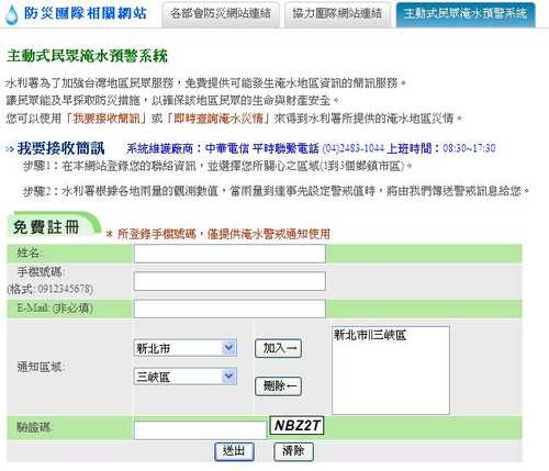 欲收淹水警戒簡訊通報登入手機號碼網址: