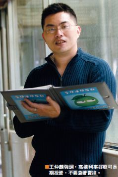 多年以來,王仲麟靠這些股票所孳生出來的股利作為一部分的生活費,這些股票就像是他的員工,每年都固定為他賺進獲利,因此,如何找到好的股票,就像要如何挑選好的員工一樣,得經過重重關卡、嚴格篩選,馬虎不得。