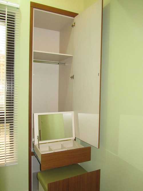 #11 右邊畸零空間做了一個小衣櫥,放穿過暫不洗的衣服;房門玄關上請木工順便做個儲藏櫃。