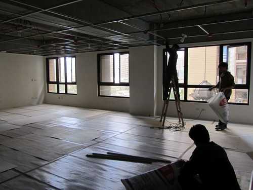 矽酸鈣防火隔間,乾式施工用木骨架或C型鋼支架,約每30cm立一支架再以水平支桿加固,並填入隔音綿施工。