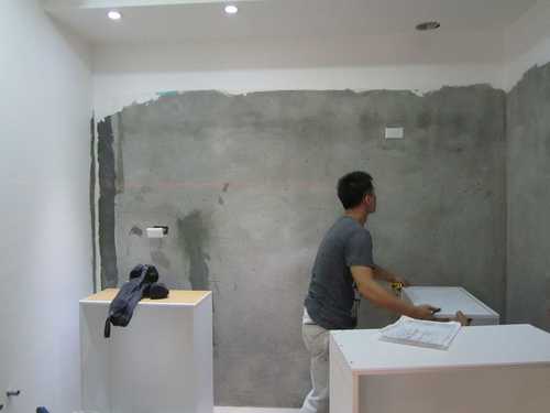 由於是以石膏為主要材料所以怕潮濕,牆底不能直接接觸樓板,通常會以水泥先築個10幾公分高的牆底再砌白磚,石膏較鬆軟,以一字型起子用手就可鑿挖貫穿......挖管線時只能以垂直方向鑿挖,若以水平方向鑿挖又在牆高一半以下.....那面牆已無強度可言.......
