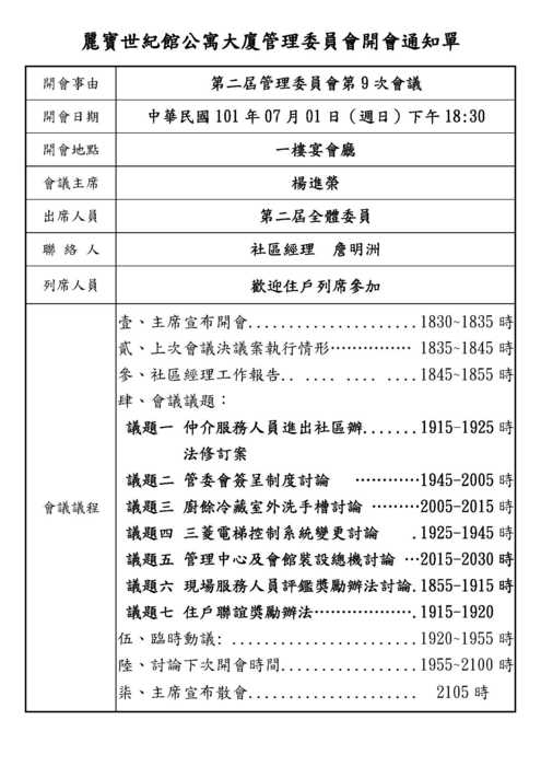 第二屆管理委員會第9次會議
