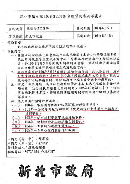 設置一個小派出所要花5年的時間, 也真服了新北市府之效率.