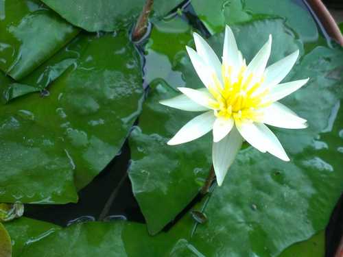 開白花,他的沈水葉有四種不同的色斑所以叫做四色蓮,很多人把他當作水草在養。