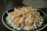 光看菜名不易猜出菜色,上菜才知是豬耳朵。底盤鋪著冰鎮過的洋蔥,汆燙後放涼的豬耳朵切得相當薄(師傅的刀功真不是蓋的),最後淋上特調醬汁,微辣中帶著白芝麻的香氣,不同一般豬耳朵滷過的料理方式,這道涼拌大薄片是相當清爽且開胃好吃。
