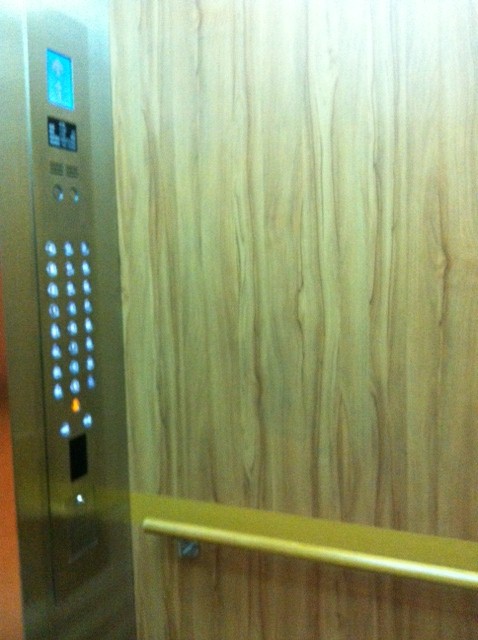 不過另一面的木紋就沒得檔了....Orz..... 建議可以看看紫京城的電梯現狀, 他們的印象中就是木紋面, 且用了幾年了吧? 會不會難保養應該可以做個參考依據.