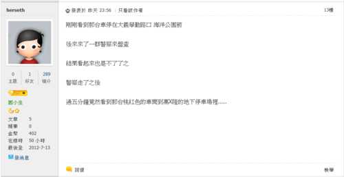 那台車仍好端端的停在車格裡!難不成報警處理比較快?........................++++1