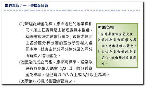 2.管理委員由區權人選任,應由區權人罷免。