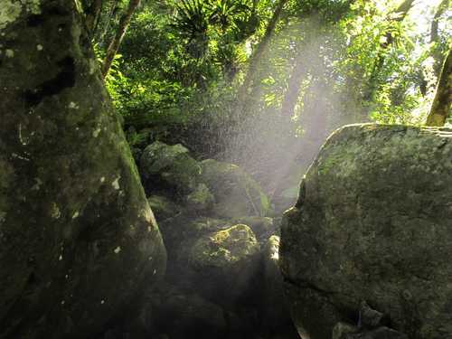 雲森瀑布常有漂亮的鳥類出現在瀑布的石頭上