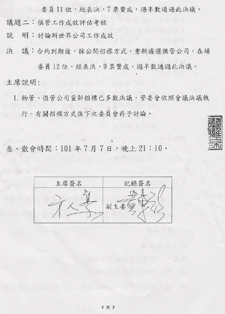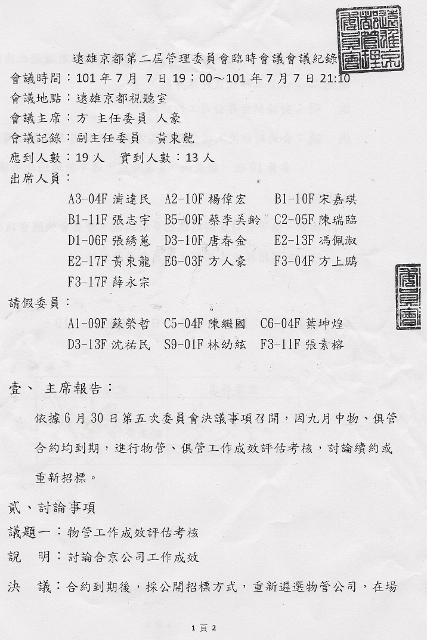 第二屆管委會[臨時會第1次]紀錄 7/7(六)/2012