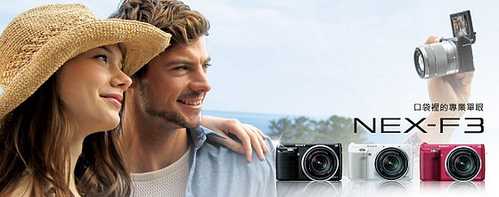 全新 Sony NEX-F3 讓你為生活點滴留下最美好的回憶。NEX-F3 內建 APS-C 感光元件能提供單眼等級的高畫質影像;並擁有多項全新功能-自動肖像取景、輕鬆自拍功能、內建閃光燈等,為你記錄生活中各種精彩冒險,以及美麗的笑容。