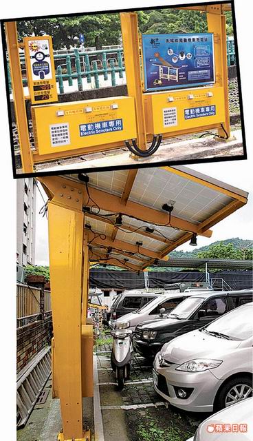 《蘋果》記者實地前往6處太陽能充電站,發現三峽區清潔隊內的充電站,前方被劃設汽車格且停滿車輛,若電動機車族想來充電,根本無法接近。泰山區清潔隊的充電站前方則被劃機車格,同樣遭車輛佔用,另坪林茶博館旁的充電站則連續4小時無人使用。