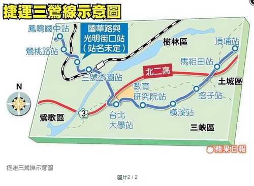 交通局專委吳國濟表示,七年前北市捷運局就完成三鶯線綜合規劃報告,至今未獲核定,時空背景已有差異,新北市府升格後重新檢視當地發展,針對捷運路線重新提出可行性研究報告,若順利核定,預計後年開始動工,九年後完工。