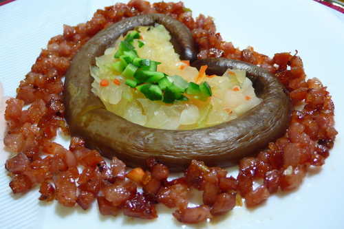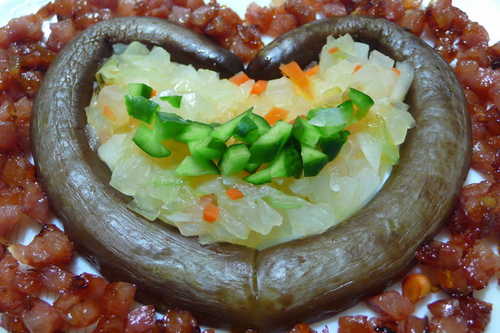 荷竹 發表於 2012-8-1 14:30 使用 刀&叉來食用 較斯文.......旁邊是香腸肉丁.....旅遊太疲勞眼力退步了...開玩笑滴. ...