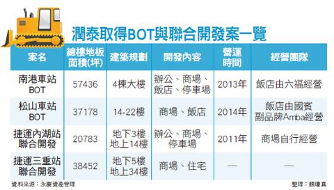 潤泰新則以拿下南港車站及松山車站的兩個BOT案,另在捷運內湖站及三重站都有聯合開發案(附表),假以時日,潤泰新的股價將如沖天炮般,而其股價也在近日創下新高。