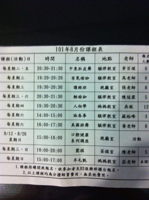 101年8月份課程表
