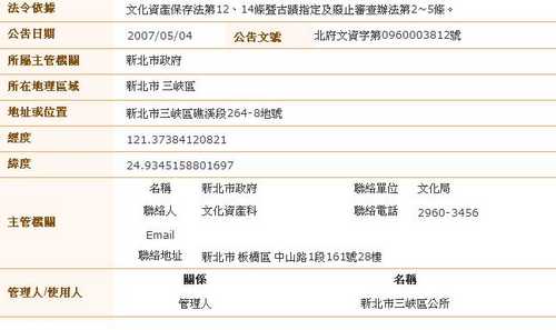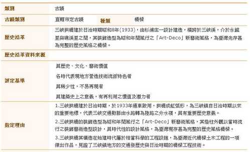 三峽拱橋雖非國定古蹟也是市定古蹟,有文化資產保存法保護。