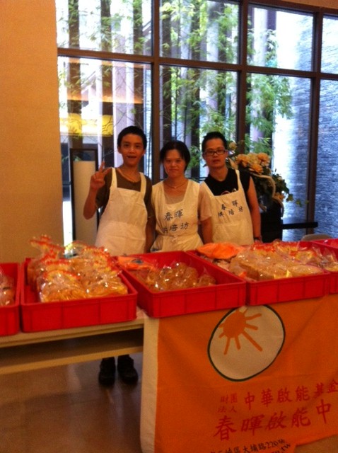 剛剛下去捧場囉!挑了五個克林姆、奶酥口味,一共115元,雖然單價有點偏高,但希望絕大部分的收入能幫助到弱勢團體,也隨時歡迎春暉定期來京都義賣喔!!加油!!