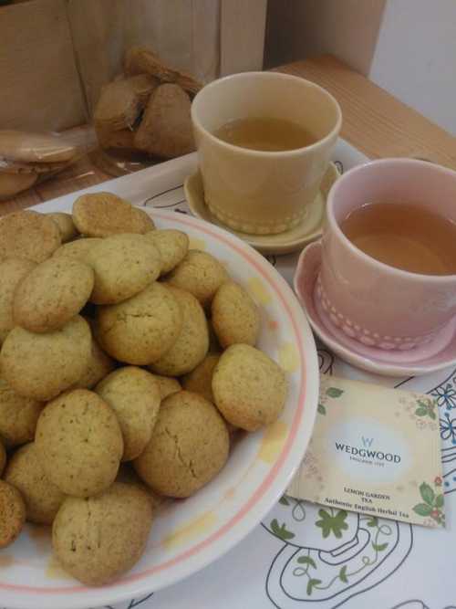 分享一下成品吧~麵粉滿細緻的,餅乾有淡淡的香草香,很舒服.配杯茶就更享受了.