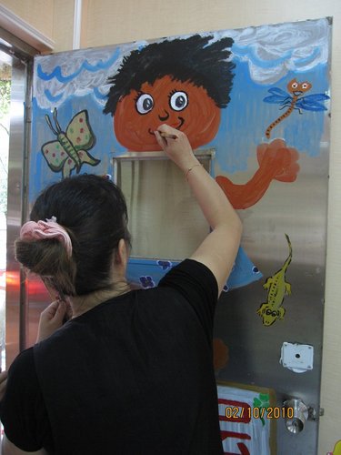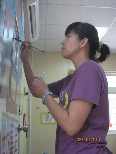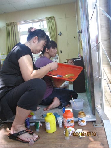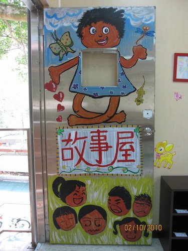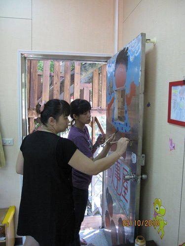 ㄧ起到學校幫忙協助故事屋門面的繪製