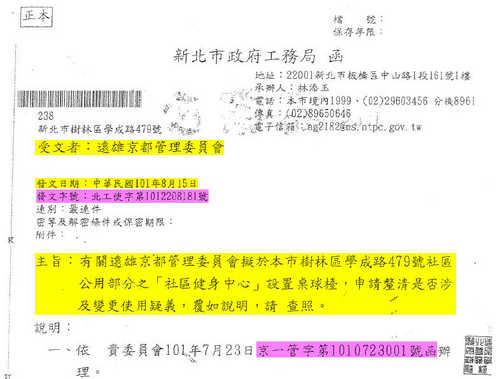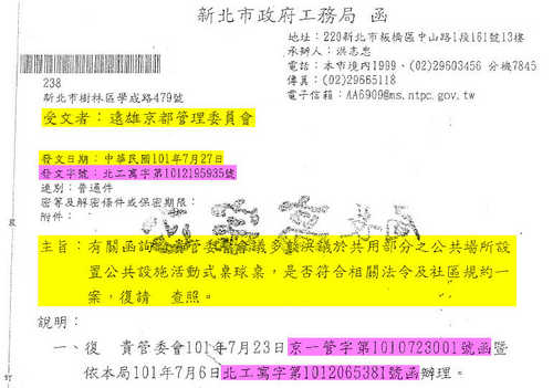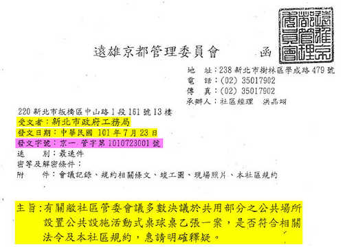 建議各住戶看此公文往返時, 請特別注意 『發文日期以免在後續討論時,因對不同時點的 公文內容,產生討討論的誤會[hr][hr]