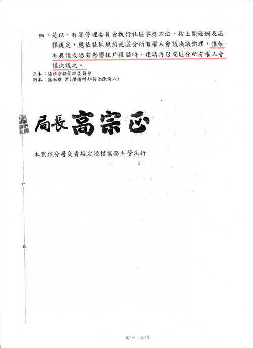 {:7_344:} 7/6 & 7/27兩件公文最後一段, 工務局的"公寓大廈管理科"都指導: 召開區權會議