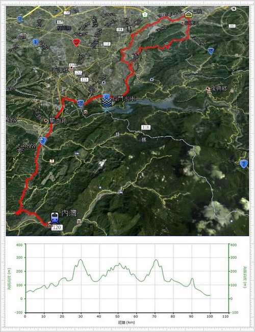 ※ 路 線:三峽~台三(或大鶯路)~大溪~台四~(石門水庫)溪洲大橋~台三乙(龍潭)~台三(中豐路)~關西(7-11)~台三~120縣道~內灣 (折返)~