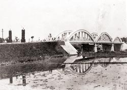 ▲橫臥三峽溪上的三峽拱橋,在一九三三年剛落成時的模樣。(本報資料照片)