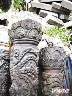 至於銅柱則因當時石雕師傅凋謝,並考量石材取得不易,便改以銅為柱,但民國七十年初安置完成後發現,銅柱上的金黃色漆,與石雕為主的廟宇略顯突兀,而且十多年後可能會生鏽,便更換為青斗石,這些被拆卸下來的銅柱,至今已有卅多年歷史,也成了一段珍貴的歷史記憶。