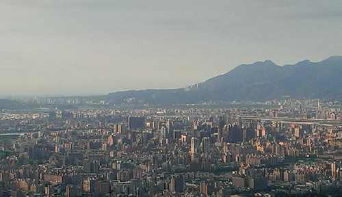 往西南面看,左下角為北大特區,在雲霧中,天氣比較不好