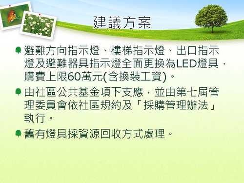 依據社區收支的理想規劃我反對燈具全面更換理由如下: