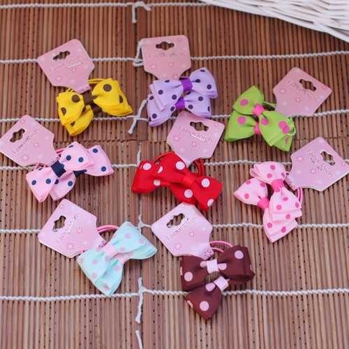 3可愛水玉點雙層蝴蝶結發繩一對 $ 59