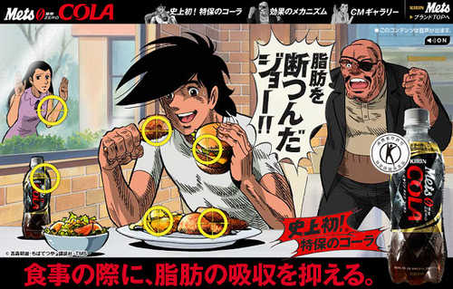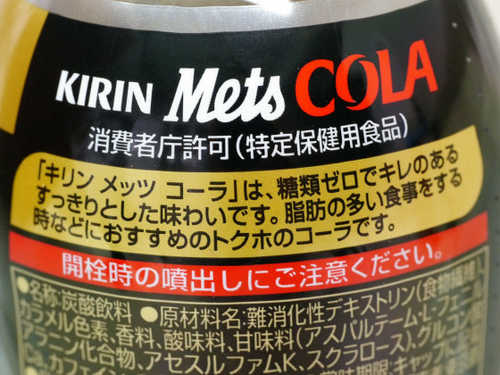 日本麒麟公司今年(2012)推出史上第一瓶,研發的主成分是難消化性麥芽糊精(食物纖維)的零熱量新可樂KIRIN Mets zero COLA,(如下圖所示)該成分會包裹所吃下食物之脂肪,避免大腸道吸收了食物脂肪,達成抑制食物之脂肪吸收之目的.