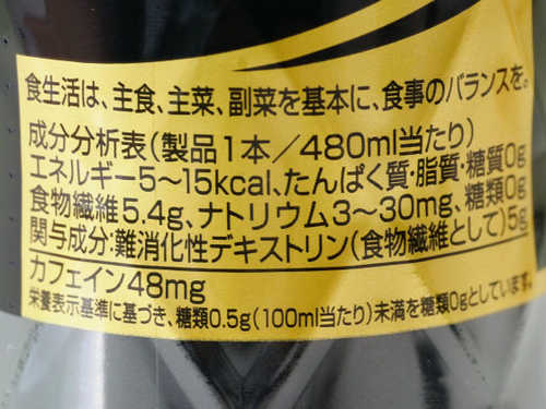 難消化性麥芽糊精(食物纖維),食用色素(焦糖),香料,檸檬酸,甜味劑(阿斯巴甜,醋磺內酯鉀,蔗糖素),葡萄糖酸鈣,咖啡因