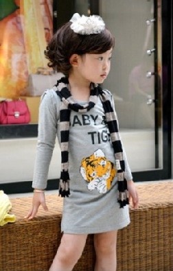 6卡通老虎女童長袖連衣裙 $250