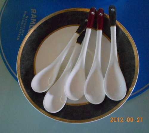 5個瓷杯(1個不小心摔破了),5支攪拌棒,6個瓷盤。
