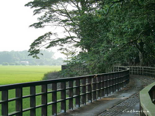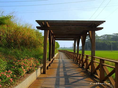 完整的木棧道沿著農田岸邊設置,林蔭遮陽十分涼爽,一望無際的稻田讓人忘卻世俗煩憂