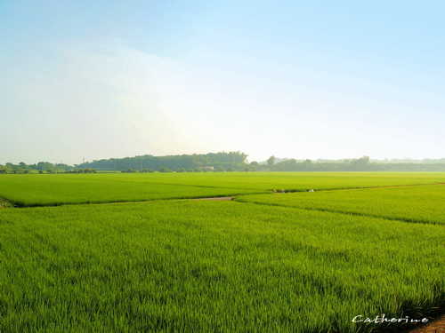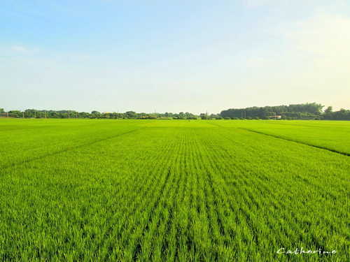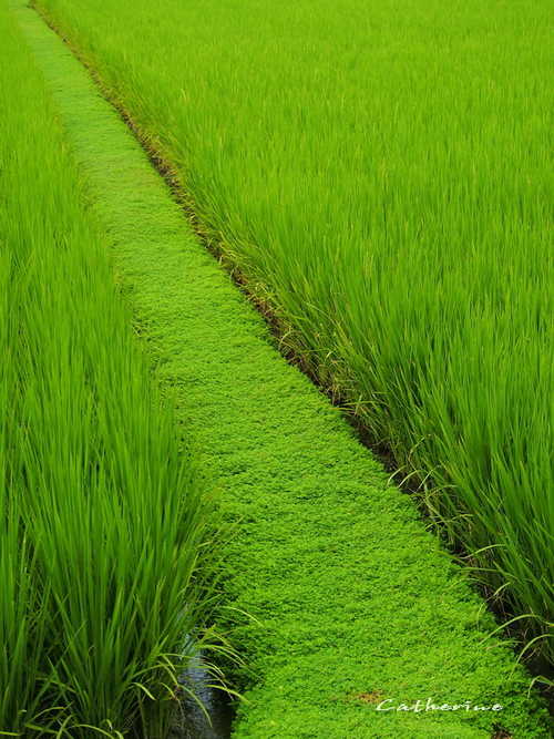 田埂上長滿綠絨絨的植披,像舖蓋一層輕柔的地毯,不禁令人驚豔大自然的奇妙