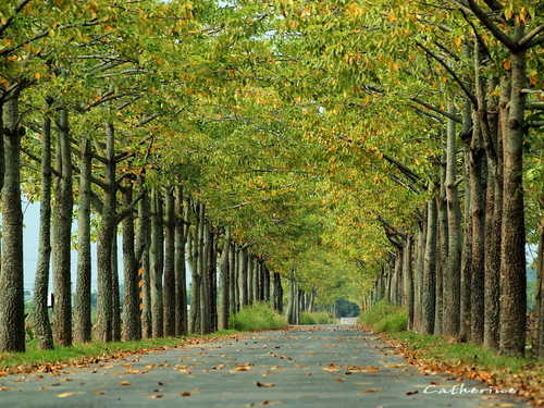 在三四月份木棉花開的季節是一條火紅車道,美得讓人摒息,現在是落葉季節也別有一番風情