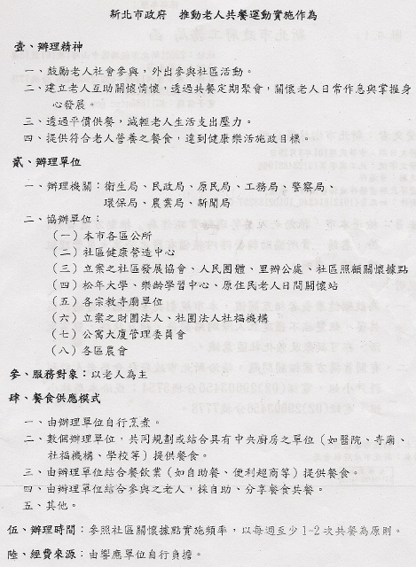 推動老人共餐運動實施作為 (新北市)