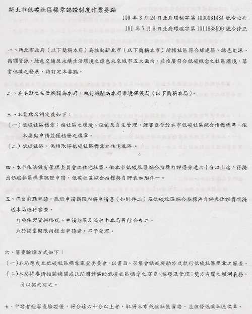 新北市低碳社區標章認證制度作業要點
