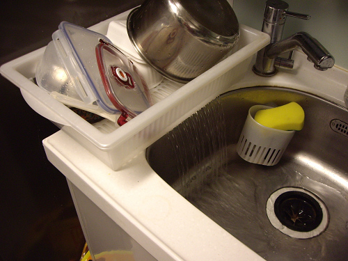 但是有客官一定會反應,那有水積在那一邊,不就立即要處理。不然又沾到洗好的東西上了!