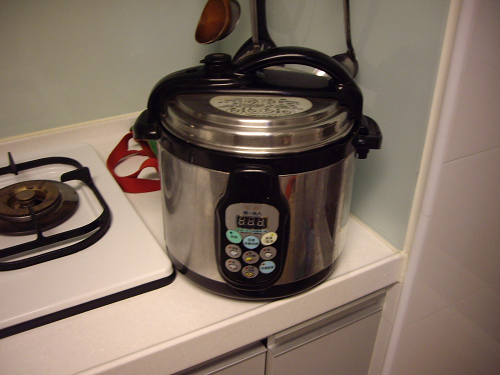 最後是今天陣亡的,弟一夫人電子壓力鍋,他好處是可以使用電子式的方式,並配合其壓力鍋的設計,來達到節能的效果!真的可以在很短時間,把肉、豆子都煮的很爛哦!只是因為壓力鍋的問題,所以水不能放太多,並且要再悶一下,東西才會入味