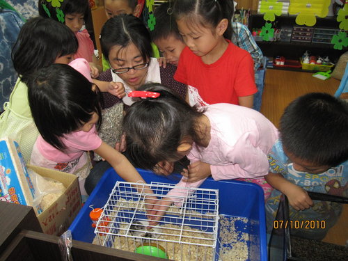 兩隻北港附幼贈送的三線鼠→有紅斑紋的叫『嫦娥』、另外ㄧ隻叫『小熊』,不是都是男生嗎?