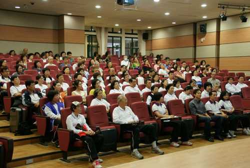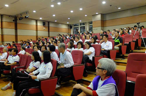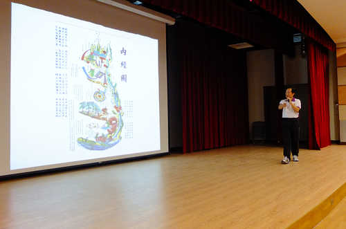 而另一位學員L師姐, 在教練的陪同下, 也勇敢的上台分享了她接觸北大練功場幾個月來的心路歷程. 將這套功法當成輔助療法的L師姐, 充滿喜悅的告訴聽眾最近的複檢她的腫瘤竟縮小了.