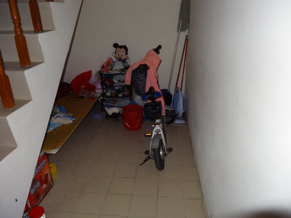 在部分其他社區的情況,是有將樓梯底部加以隔間上鎖,可當儲藏室使用而且較為美觀,以上建議。