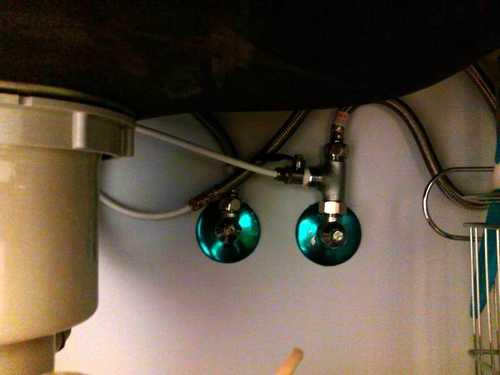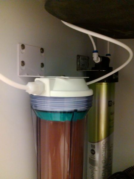 我們濾水器是架在左方的壁上 (一個是濾水器 另一個好像是甚麼樹酯交換?? 有點忘了)