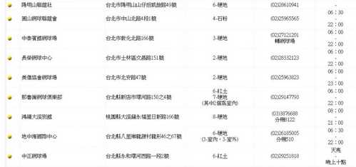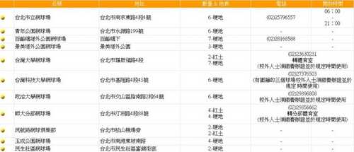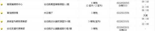 大台北大區主要球場一覽表
