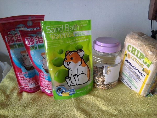 16. 鼠籠(被啃的痕跡)+鼠沙3包(1包全新、1包一半、1包一點點)+飼料(約3分之1)+木屑(